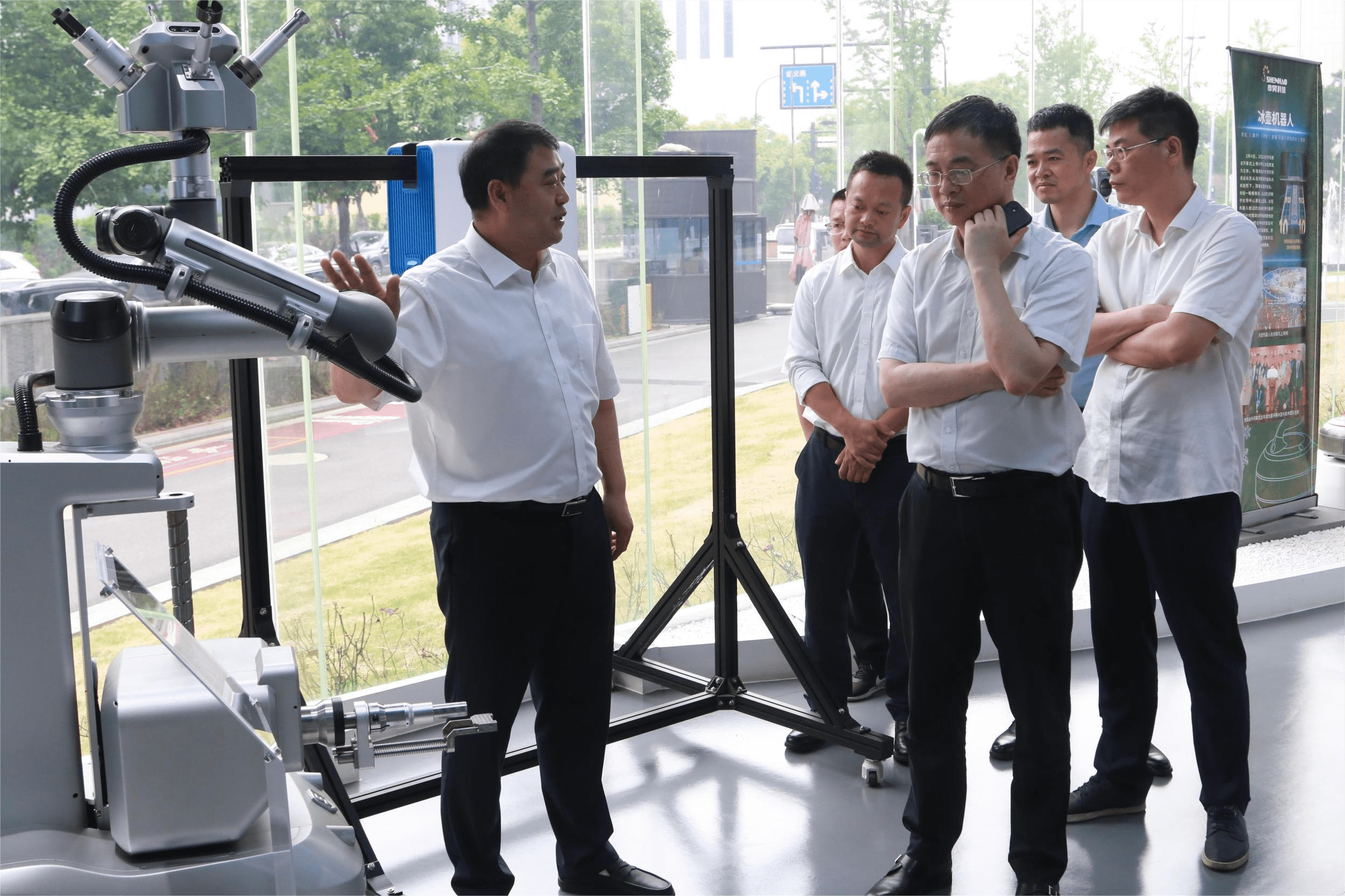 5月30日,杭州地鐵集團(tuán)董事長朱少杰率領(lǐng)代表團(tuán)訪問申昊科技,與申昊科技領(lǐng)導(dǎo)就合作事宜進(jìn)行討論。杭州地鐵集團(tuán)副總經(jīng)濟(jì)師、投資運(yùn)營部長周華,機(jī)電設(shè)備部長朱建華,杭州地鐵運(yùn)營公司黨委書記、董事長徐波,杭州地鐵科技公司董事長朱佳峰等領(lǐng)導(dǎo)陪同考察。申昊科技董事長陳如申、總經(jīng)理曹光客等領(lǐng)導(dǎo)出席接待。雙方一同參觀申昊科技,并就地鐵數(shù)字化轉(zhuǎn)型進(jìn)行探討。