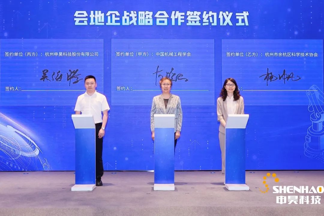 在智能制造數(shù)字化轉(zhuǎn)型與數(shù)字價(jià)值主題論壇中,申昊科技吳海騰副總經(jīng)理代表公司與中國(guó)機(jī)械工程協(xié)會(huì)、杭州市余杭區(qū)科學(xué)技術(shù)協(xié)會(huì)簽署了會(huì)地企戰(zhàn)略合作協(xié)議。